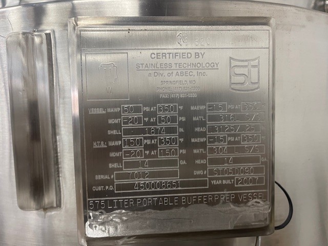 575 Liter Gallon Vacuum / Jacketed MIXER Tank w/ MIXER