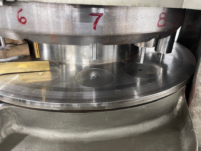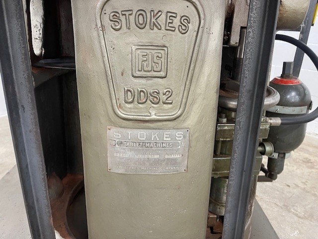 Stokes DDS-2 Tablet Press. 14- Station. With Key-wayed upper punch guides, Driven by a 7.5 Hp, 208-230/460 Volt, 3 Phase, 60 Hz Motor. Single -Sided Press