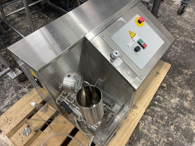 Description | : | Microfluidics M110P Microfluidizer. Unit was manufactured in 2010. The recommended uses for the M110P -11 include: Cell disruption Production of nano-dispersions and nano-emulsions Microencapsulation in polymers, liposomes and oils Deagglomeration Additional features include: Ability to achieve processing pressures up to 30,000 psi Produces product flow rate up to 125 mL/min Fan cooled drive system Fits in standard laboratory chemical hood CE compliant Specifications: Pressure range: 2,000 – 30,000 psi Minimum sample size: 50 mL Flow rate (water): up to 120 mL/min Product temp limit: 73 deg C Power requirements: 220 Volts Dimensions (W x D x H): 31.5 “ x 22” x 19” Weight: 110 kg (242 lbs) Interaction chamber material: Diamond Plunger material: Zirconia Ceramic Stainless Steel enclosure Drive Method: electric Hydraulic Product Pressure Gage: Mechanical Feed reservoir: Stainless steet |
