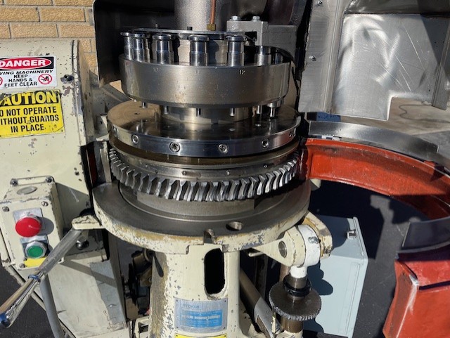 Stokes DS3, 15-station tablet press. Rated up to 335 TPM, press capable of producing tablets up to 1 3/16" diameter with 1 5/16" depth of fill. Maximum pressure is 10 tons. Unit comes with stainless steel hopper. Press is driven by a 3 Hp/3/60/208-230-460v motor. Head is keyed. ** Please note - All sales of tabletting and encapsulation equipment will be registered in accordance to D.E.A. guidelines. **