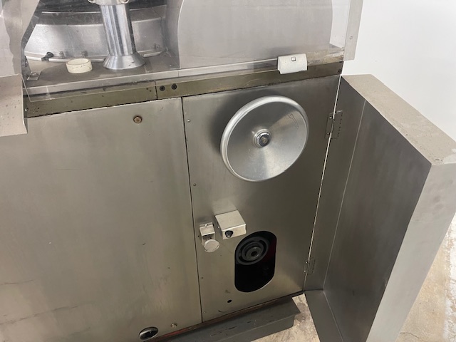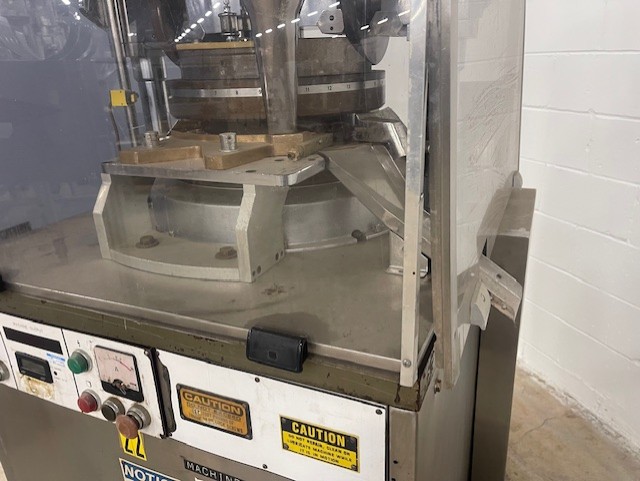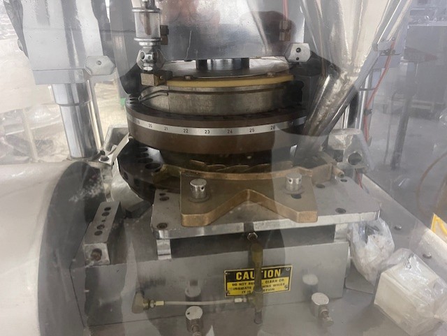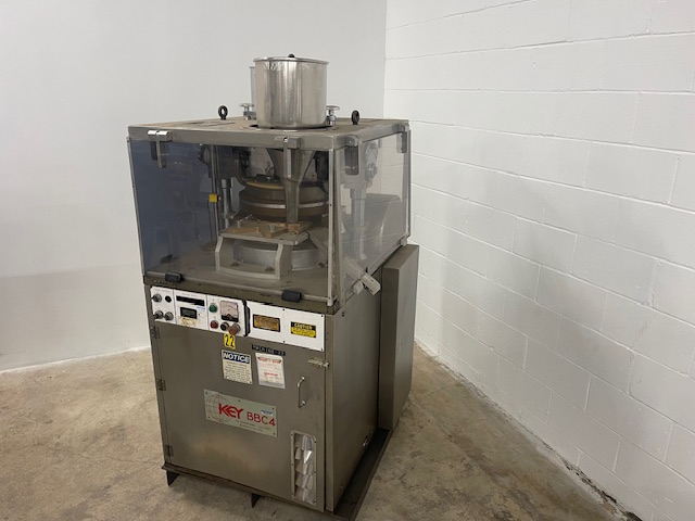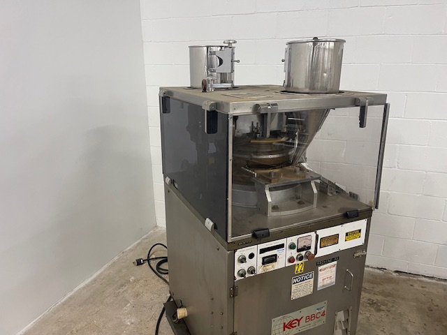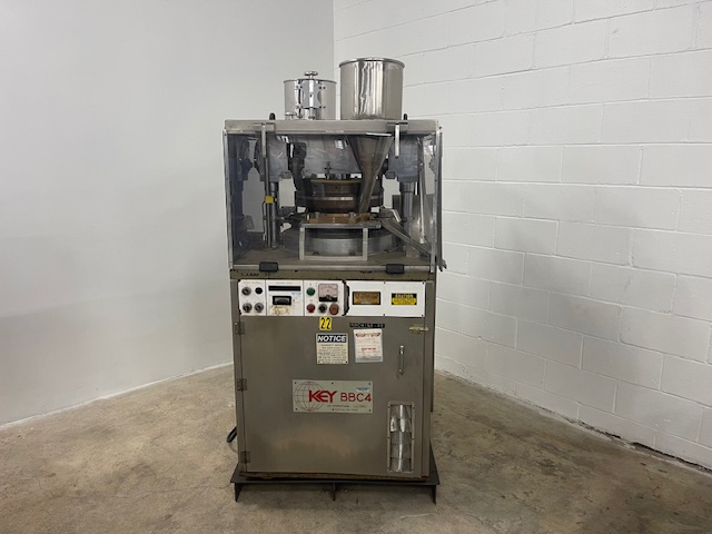 key International BBC4 35 Station Tablet Press Double Sided- Model BBC4, 35 station, 6.5 ton compression pressure, 5/8" max tablet diameter, 11/16" max depth of fill, feed frames with hoppers, rated 210000 tablets/hour ** Please note - All sales of tabletting and encapsulation equipment will be registered in accordance to D.E.A. guidelines. **