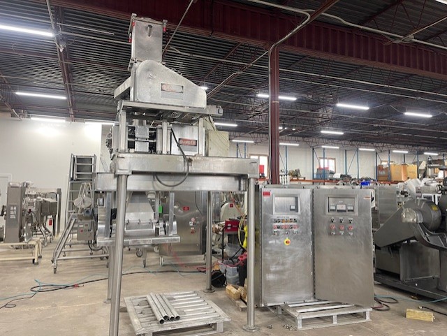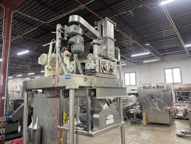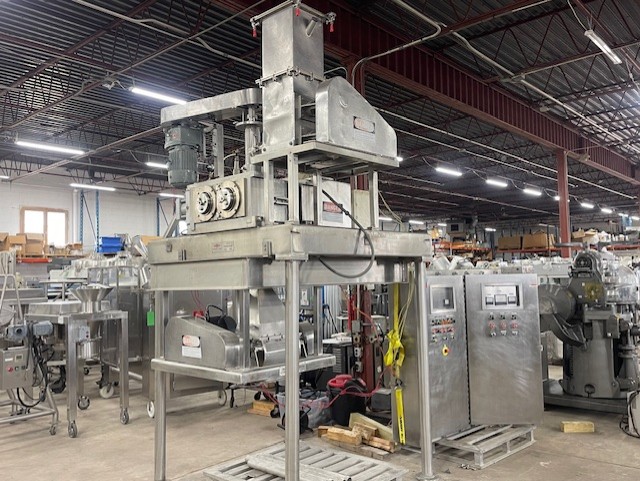 | Description | : | Fitzpatrick Model 4LX10D, 316 stainless steel, free standing roller compactor, chilsonator with onboard stainless steel Fitzmill Model DKASO12 knife rotor hammer mill and the system is rated from 250 – 400 kg of product per hour – depending on materials, application, machine configuration and environment being run in. Equipped with 4" OD horizontal metering screw with 1 Hp motor drive that eliminates vacuum dearation to 4 OD" vertical pre-compression screw with 5 Hp motor drive, that compresses product for more uniformity prior to feeding into the 4" OD x 10" long face cored product compaction rollers with 7.5 Hp motor drive and bulk densities of feed from 10 to 100 lbs per cubic foot and roll force of 17.5 KN/cm with roll gap range of 1mm to 6mm.horizontal screws, variable frequency speed controls with start and stop push buttons and e-stop. Mounted on (4) stainless steel leg |