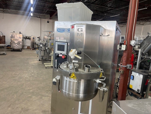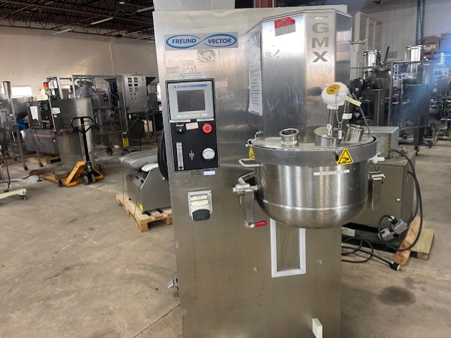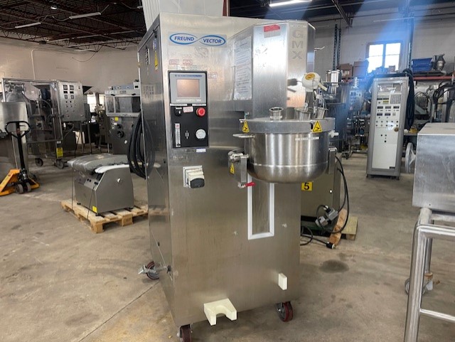 Vector GMX-25 High Shear Mixer 25 Liter Bowl Allen Bradley PanelView Plus 600 User Interface Includes GMX-25 Cart On Casters BOWL CAPACITY 25 L WORKING CAPACITY 8.25 - 17 L . MIXER SPEED 43 - 425 RPM. Top Drive High Shear Wet Granulation Mixing Systems The GMX GRANUMEIST® High Shear Granulator and Mixer is designed for efficient and homogenous wet granulation of powders to form a medium to high density granule. Its top-drive design allows for easy cleaning and maintenance, faster processing times, and superior user safety. Engineered with the end-user in mind, the GMX GRANUMEIST® family is the ideal solution for your wet granulation and mixing needs