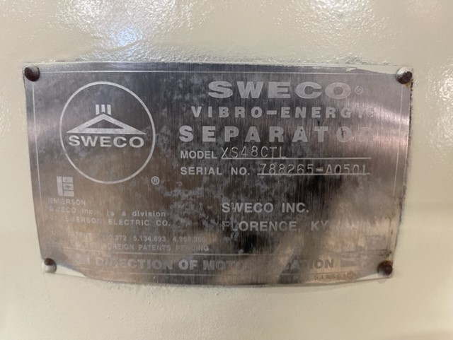 Sweco 48". Diameter Stainless Steel Vibratory Screener/Sifter Model :XS48CTL , S/N 788265-A0501. driven by a 2.5 HP 3/60/460 volt motor .
