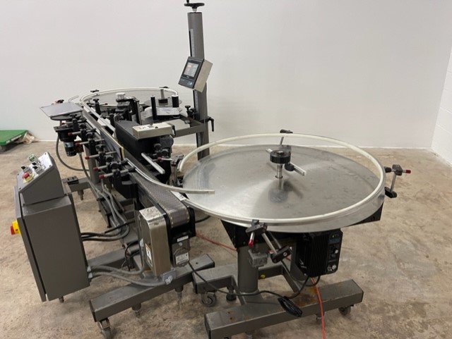 HOME / CTM Labeling Machinery w/ 2 Stainless Steel 36" Accumulation Turntables