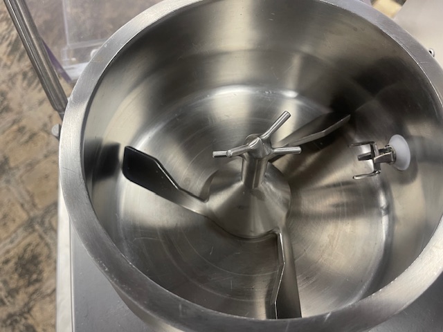 Diosna Lab Mixer-Granulator, Stainless Steel, (3) blade impeller with side entering chopper blade. Plastic clamp down top cover. Driven by an approximate 1-1/2 hp