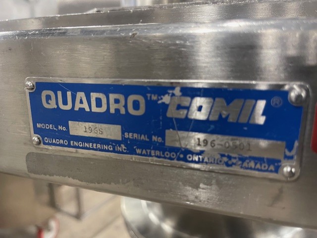 Quadro 196 comil. Unit is driven by a 10 Hp 208-230/460 Volt, 60 Hz, 3 Phase motor. Machine comes with 1 screen, 1 impeller