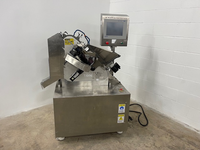 Ackley single row printer, speeds up to 60000 tablets/hour single side, 50000 tablets/hour double sided, model 01911-00059, 230 volt, CE rated, serial# 1404, built 2013