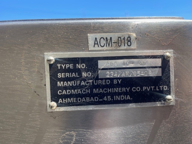 | Description | : | Cadmach Cadpress 45-Station "D" Tooling Double Sided Tablet Press, Mark 4, Type CPD 1V-45, SN 234-AK-0506, Double Sided "D' Tablet Press with main compression, pre-compression, force feeders Double Sided Press which comes with Pre Compression, main compression and upper punch penetration and is Rated at over 100K Tablets per hour, this unit comes with, auto tablet rejection during M/C, Start & Stop along with random Tablet Sampling Device, Powder Leveling at feed hoppers, Gravity feeding system, 480 volt,3 ph., 60 Hz Frameless Transparent upper Guard Designed especially for sound reduction and operator safety. CADMACH CADPRESS MODEL CPD IV- 45 “D” TOOLING TABLET PRESS |