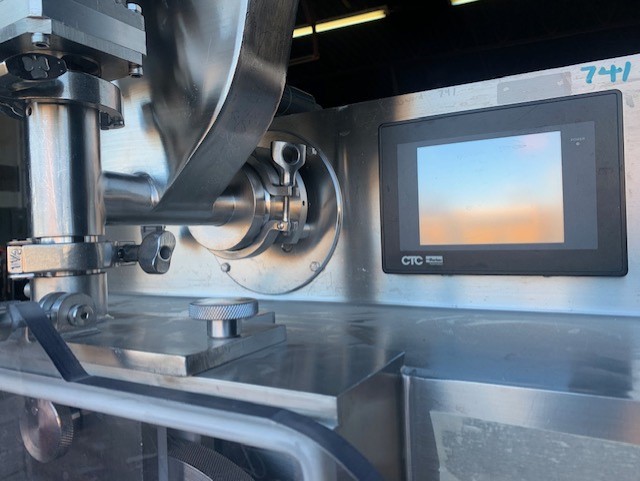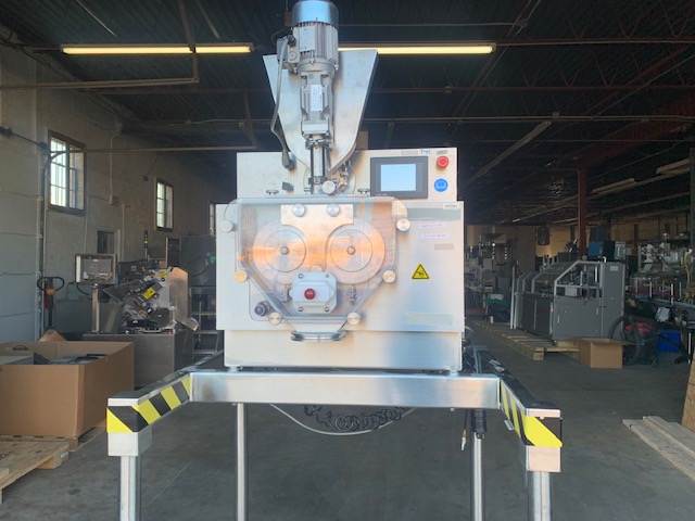 | Description | : | Fitzpatrick IR220 Mobile Roller Compactor Chilsonator Stainless steel construction Includes 3 sets of rolls : IR 220 / SN: 717 .Roll Compactor is ideal for lab, pilot plant and small production. Maximum process flexibility is acheived with: variable speed rolls and feed screws, variable roll pressure, roll gap measurement, and multiple roll configurations available. Benefits you can obtain from the IR 220 Chilsonator roll compactor are. Results can be applied to larger production scale units. Process batches as small as 50 grams and as large as 20 kg/hr with minimal loss. Easy to disassemble and clean. Multiple roll configurations available. Automated "operator friendly" PLC controls.otally enclosed process area All stainless steel construction. 8" diameter x .75" roll face width. Horizontal feed screw with hopper driven Vertical feed. On stainless steel base. Allen Bradley PLC controller and motor VFD controllers 230 volt. |