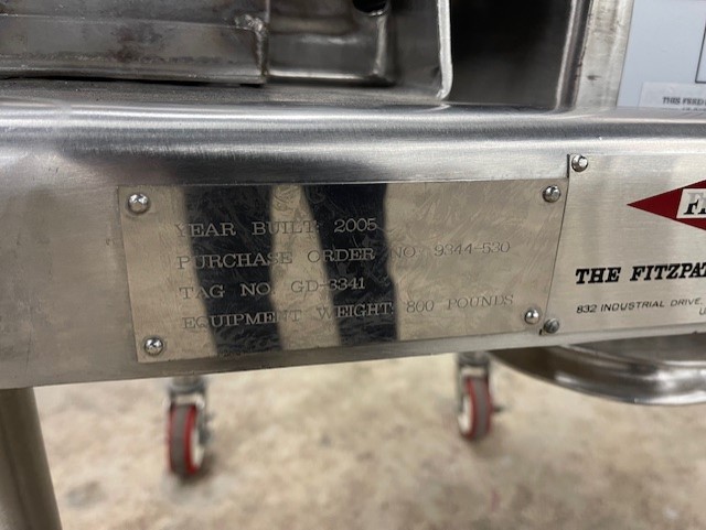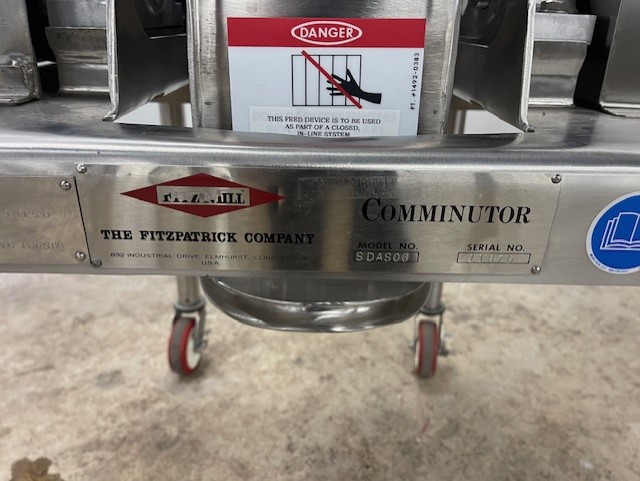 Fitzpatrick DAS06 Fitzmill All stainless steel Chute Feed Fitzmill Reversible chamber with blunt/impact fixed blades both sides. Unit is on casters for portability