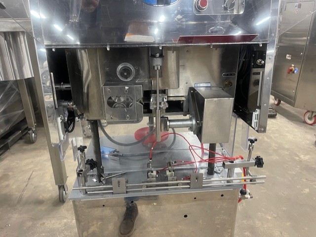 King CF100 Cottoner. Unit is constructed of Stainless Steel and can do up to 100 bottles per minute. Comes with control panel, plexiglass guarding and is mounted to a Stainless Steel enclosed frame. Containers Dimensions: 25mm to 75 mm diameter, 18mm to 200mm height, 10mm to 50mm neck size. Length of cotton is adjustable for different size bottles. Electrics: 3 Ph/60 Hz/220 volts