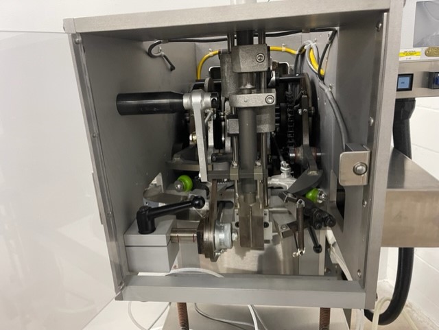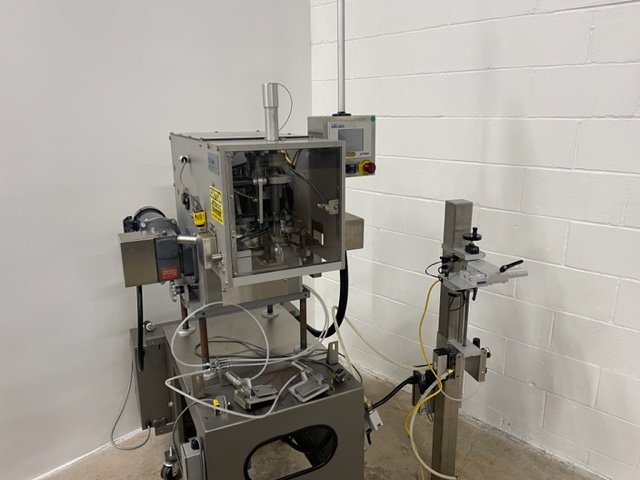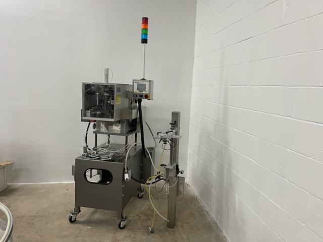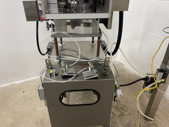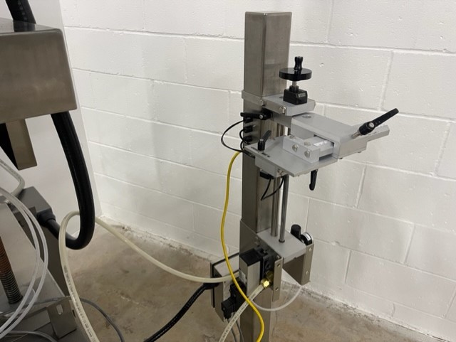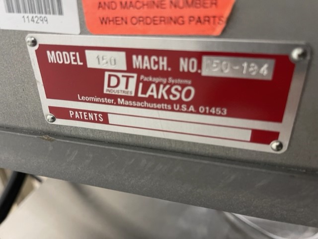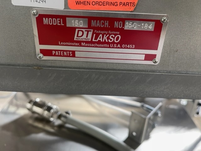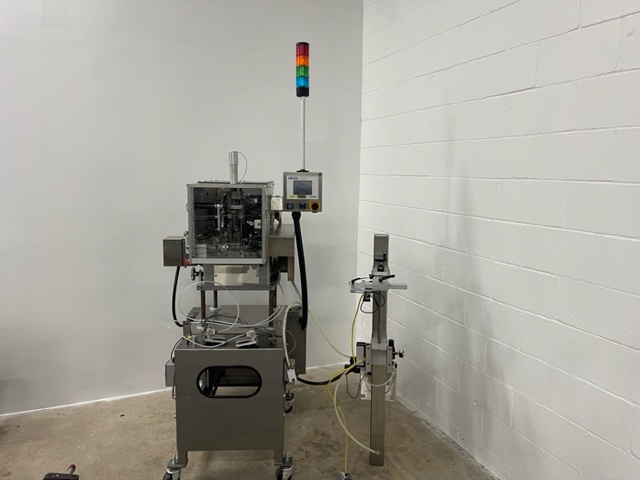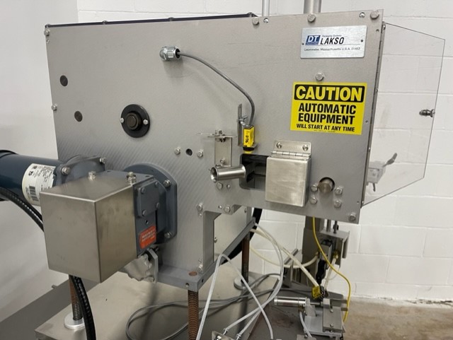 Lakso Model 150 Single Head Station Cottoner. Machine is capable of speeds up to 150 bottles per minute stainless steel construction