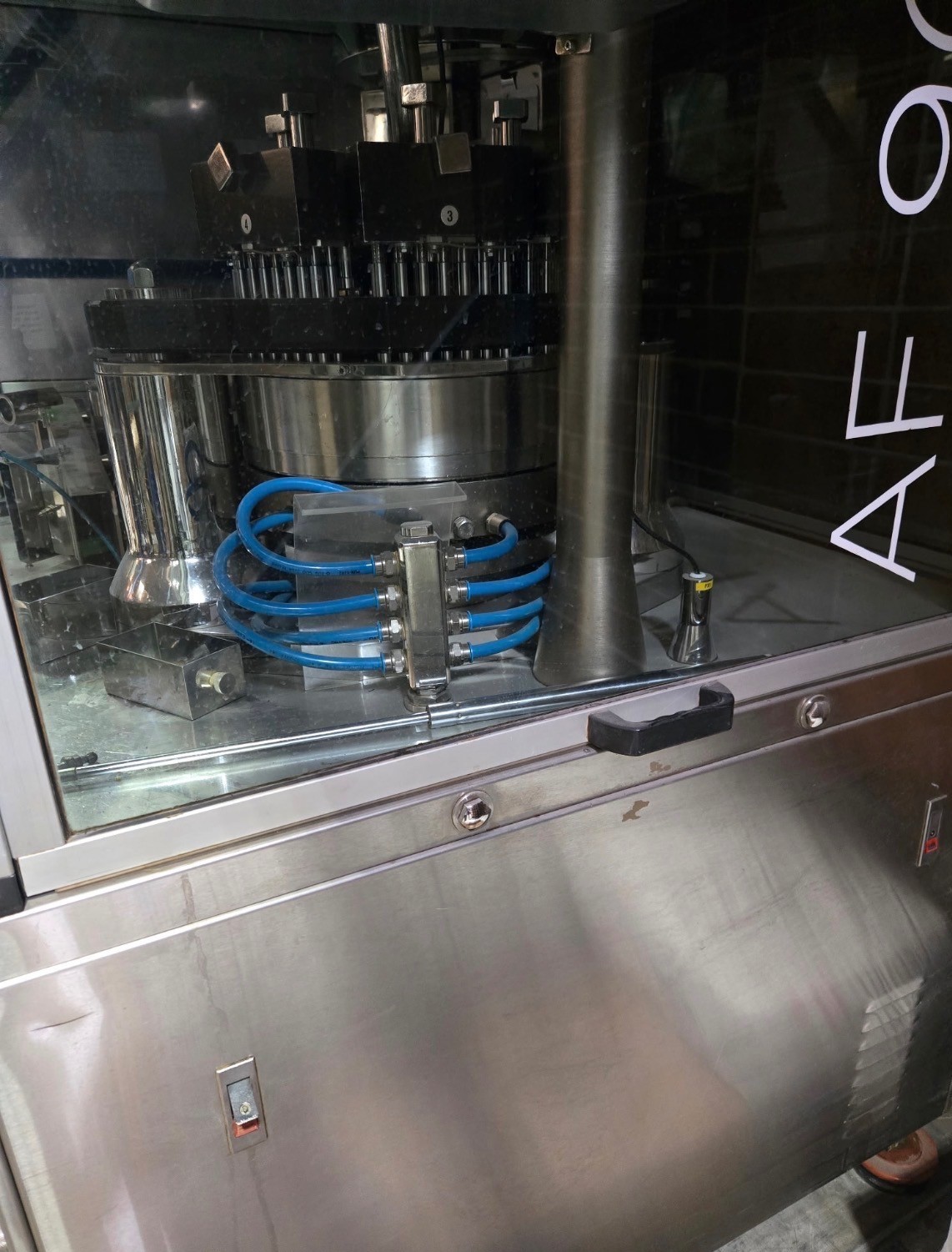 P+AM Model AF90T Automatic Capsule Filling Machine. Rated up to 90,000 capsules per hour, machine has stainless steel cabinetry and was last used in the Vitamin industry. Electrical specifications 3 phase 60 cycle, 230 Volt