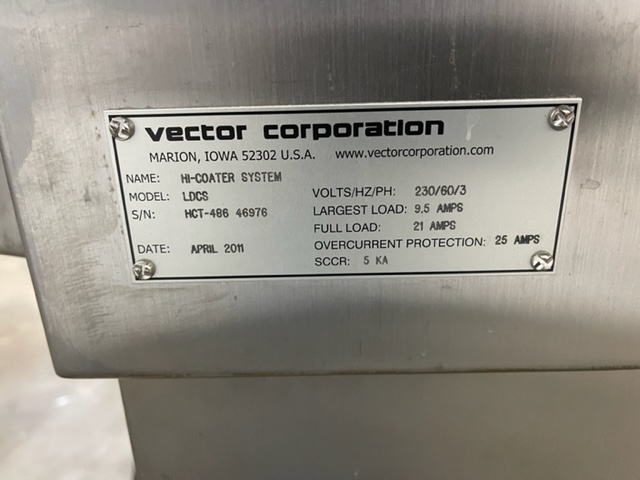 Vector Corporation LDCS Coating Pan HI-COATER SYSTEM Volt :208/60/3