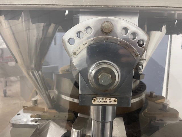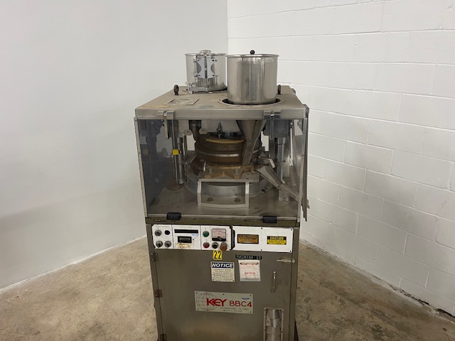 key International BBC4 35 Station Tablet Press Double Sided- Model BBC4, 35 station, 6.5 ton compression pressure, 5/8" max tablet diameter, 11/16" max depth of fill, feed frames with hoppers, rated 210000 tablets/hour ** Please note - All sales of tabletting and encapsulation equipment will be registered in accordance to D.E.A. guidelines. **
